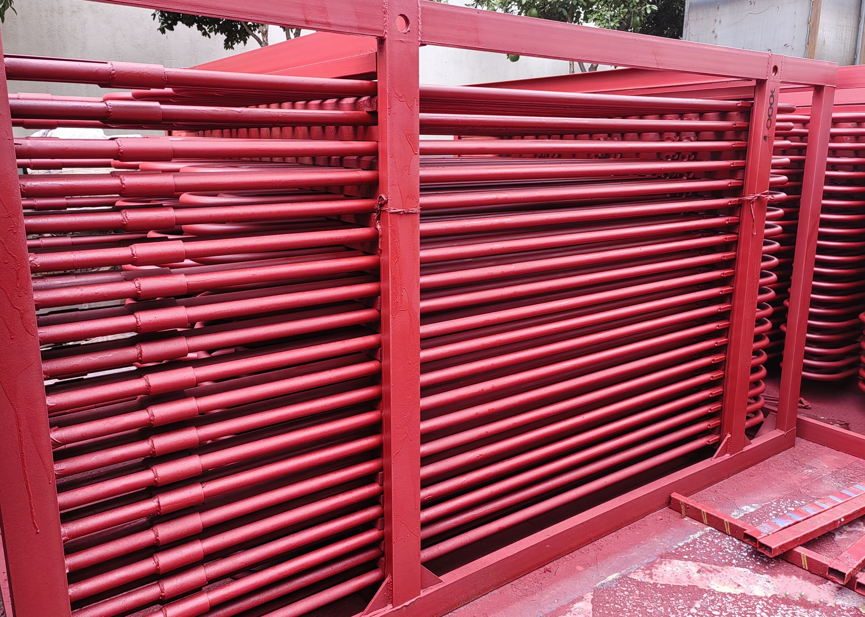 | 製造プロセス | 材料→インゴット → ホット/コールドローリング→ 熱処理 (正常化+テンパー) → 検査 → 曲がり管→ 組み立て→ 検査 →RT→ 熱処理 (アニール) → 水圧圧力試験→ 塗装→ 梱包 |
